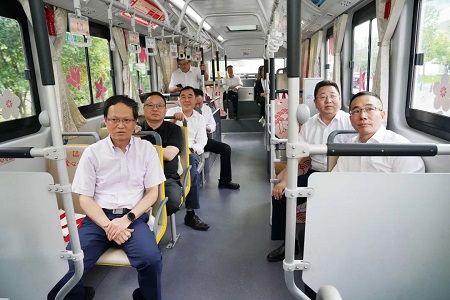 朱學軍一行首先來到大新路公交樞紐站,聽取嘉通集團關于市區(qū)公交場站規(guī)劃布局、城鄉(xiāng)公交三次改革、大新路公交樞紐站暖心驛站建設等情況的匯報;隨后,調研組乘上101路公交車,體驗紅色旅游公交線路,了解城鄉(xiāng)公交一體化改革成果,親身感受嘉興城鄉(xiāng)一體化發(fā)展帶來的便利。朱學軍充分肯定嘉通集團在公交民生服務方面的舉措和成效,要求繼續(xù)優(yōu)化設施、提升服務,更好滿足群眾的公共交通出行需求。